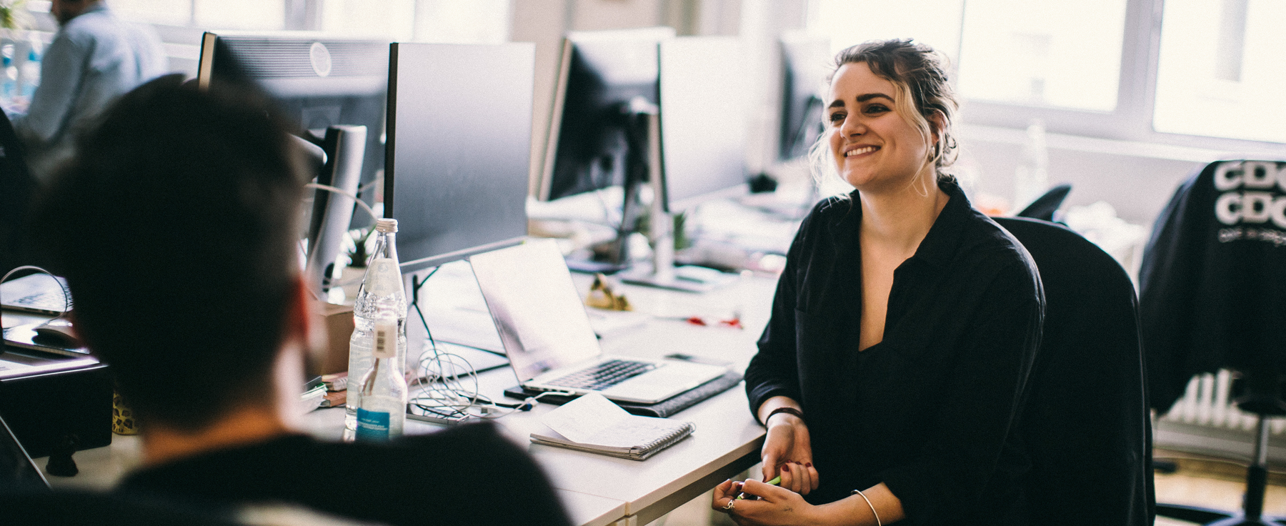 People-talking-at-computers-in-work-place